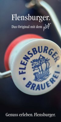 Flensburger Strand-Lager. Flensburger Radler. plop’ – kräftiger, naturtrüber Genuss! Unsere helle, ursprüngliche und naturtrübe Bierspezialität ist kräftig wie der Küstenwind, mild wie das Sonnenlicht und ungefiltert wie der echte Norden. Feine Hopfenaromen und eine einzigartige Mischung aus drei verschiedenen Malzsorten machen es so besonders süffig und lecker. Seit dem Frühjahr 2024 umgarnt das Flensburger Strand-Lager nach behutsamer, natürlicher Gärung und 6 bis 8 Wochen Kaltlagerung die Gaumen der Pilsener-, Hell-, Keller- und Landbierfreunde. Egal, ob bei Wind und Wetter, zur Feier des Tages oder sonstigen Anlässen, das Gefühl von Freiheit, Urlaub und Natürlichkeit ploppt immer mit. Kulinarisch wird es zu raffinierten wie einfachen Speisen, zu Fisch- gerichten in allen Variationen, aber auch zum klassischen Abendbrot, bei würzigem Käse und deftiger Wurst empfohlen. plop’ – eine spritzige Erfrischung! Das FLENS unter den Radlern. Im perfekten Verhältnis aus 50 % Flensburger Pilsener und 50 % kalo- rienreduzierter Zitronenlimonade gemischt – mit einer Zuckerart und Süßungsmitteln. 2005 eroberte unser Flensburger Radler die Herzen und Gaumen der Biermix-Fans und warf ganz nebenbei die Frage auf, warum das neue leckere FLENS nicht Alster heißt, wie im Norden zumindest in der Gastronomie üblich, sondern eben Radler. Doch nur wenige plop’s später war man sich darüber einig, dass nicht der Name zählt, sondern der Geschmack, und man schaute wieder zufrieden aufs Meer hinaus. Kulinarisch passt es besonders gut zu gewürzten Speisen, wie zum Beispiel diversen südländischen Wurstspezialitäten. Aber auch süße Gerichte und Desserts werden durch das Flensburger Radler harmo- nisch abgerundet. Erhältlich in der 0,33-l-Flasche und im 30-l-Fass. Erhältlich in der 0,33-l-Flasche. Alkohol 6,2 % vol · Stammwürze 13,3° Plato Alkohol 2,4 % vol · Stammwürze 6,3° Plato Genuss erleben. Flensburger Strand-Lager. Genuss erleben. Flensburger Radler.